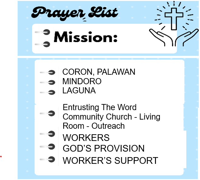 As we look ahead, Entrusting the Word Fellowship Church continue to lift up the Coron Mission in prayer. We remain confident that the Lord will accomplish His greater purpose in His perfect time.